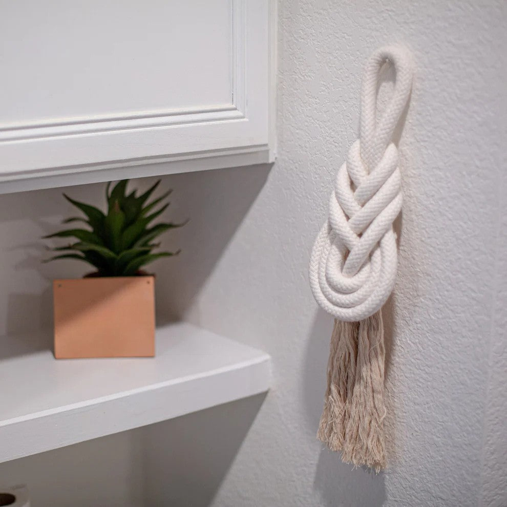 The Medium Pippa Wall Hanging is a stunning handmade & fair trade addition to any statement wall or hallway. Its modern, simplistic design and neutral color lends itself to almost any style of home décor. The knot measures: