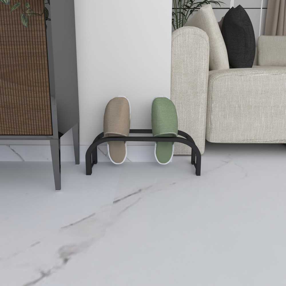 This sleek and space-saving slipper storage rack offers a practical and stylish way to organize your slippers. Designed with a curved metal frame, it allows you to neatly display your slippers while keeping them easily accessible. Its compact size makes it a perfect addition to any entryway, living room, or closet, helping you reduce clutter and maintain a tidy space.